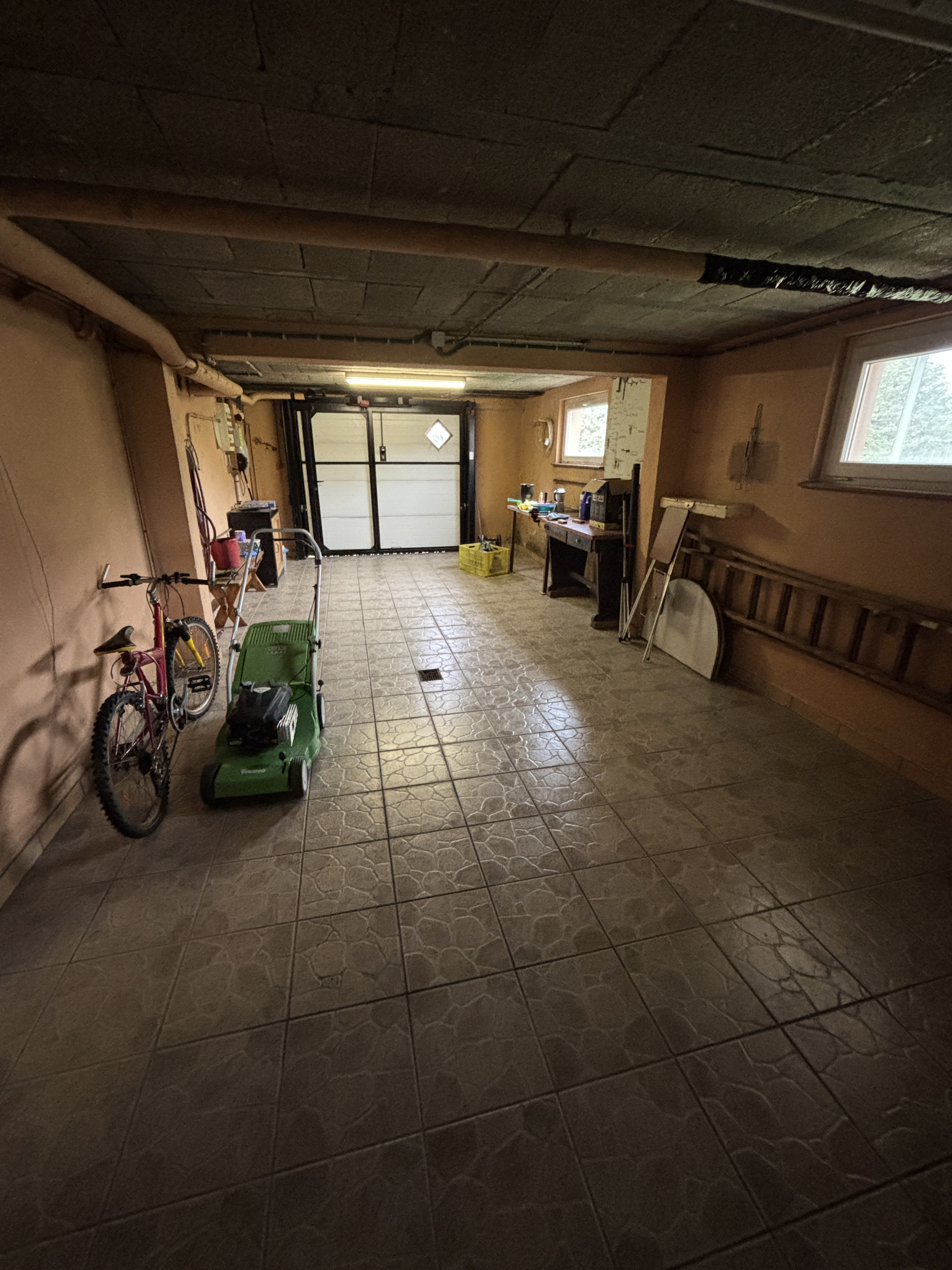 sous-sol complet : garage double, grande pièce (dégagement), 1 chambre, salle d'eau-WC, chaufferie (C.C. fuel), 2 celliers, sur terrain de 10,51 ares