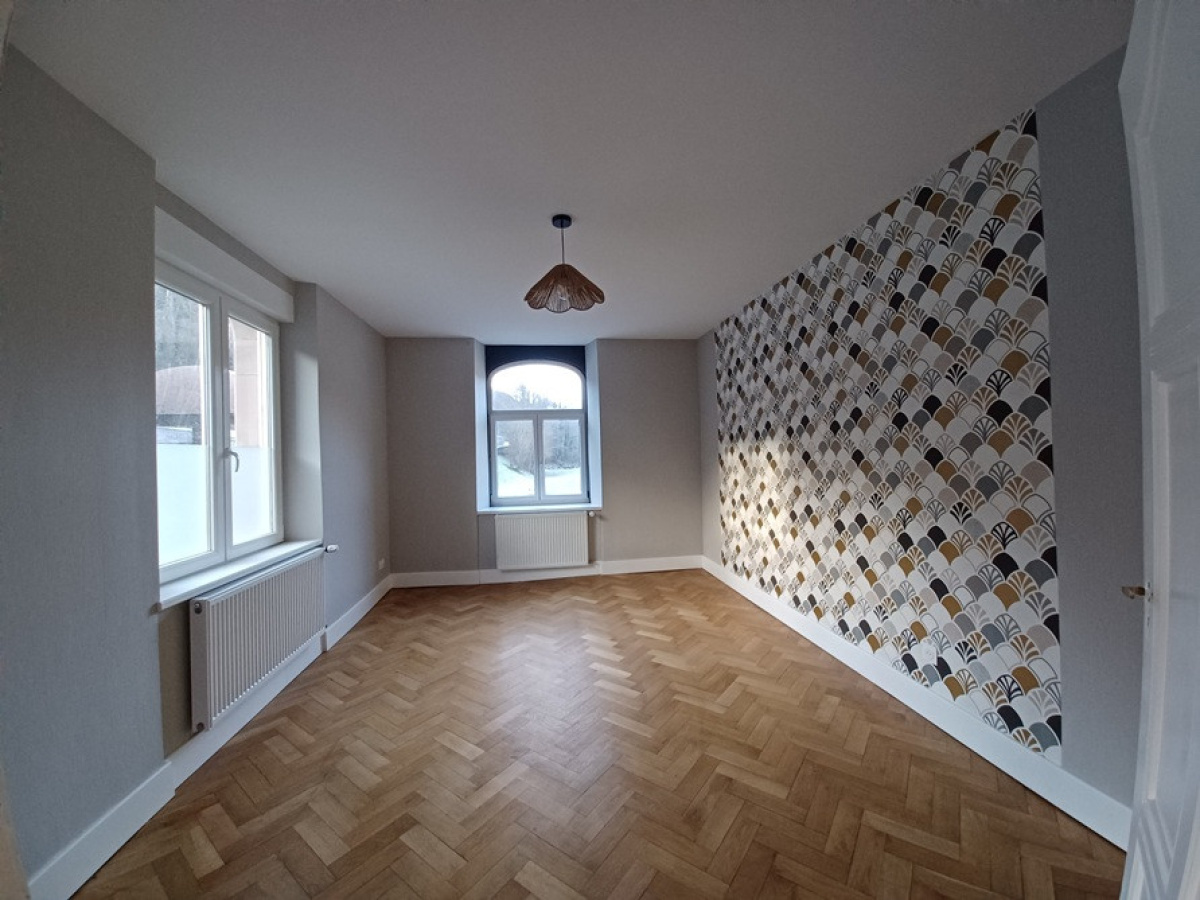 5mn PHALSBOURG / 10mn SAVERNE, commune offrant de nombreuses commodités, dont 1 GARE SNCF, en RDC : APPARTEMENT de 109m² comprenant : entrée-dégagement, cuisine équipée ouverte sur séjour, salon, 2 chambres, salle de bains (B+D), buanderie, WC, espace vert + GARAGE Chauffage central collectif (pellets) Loyer : 800 + charges 70 (chauffage, eau et communs)