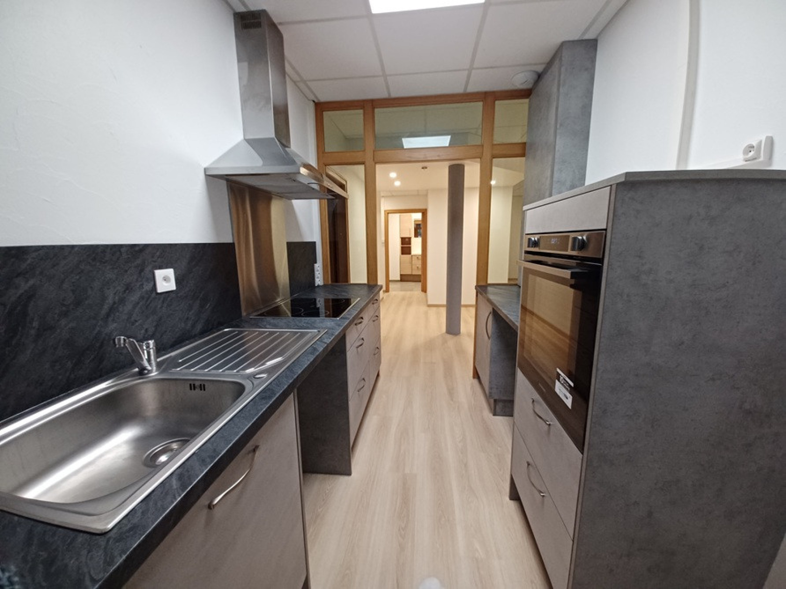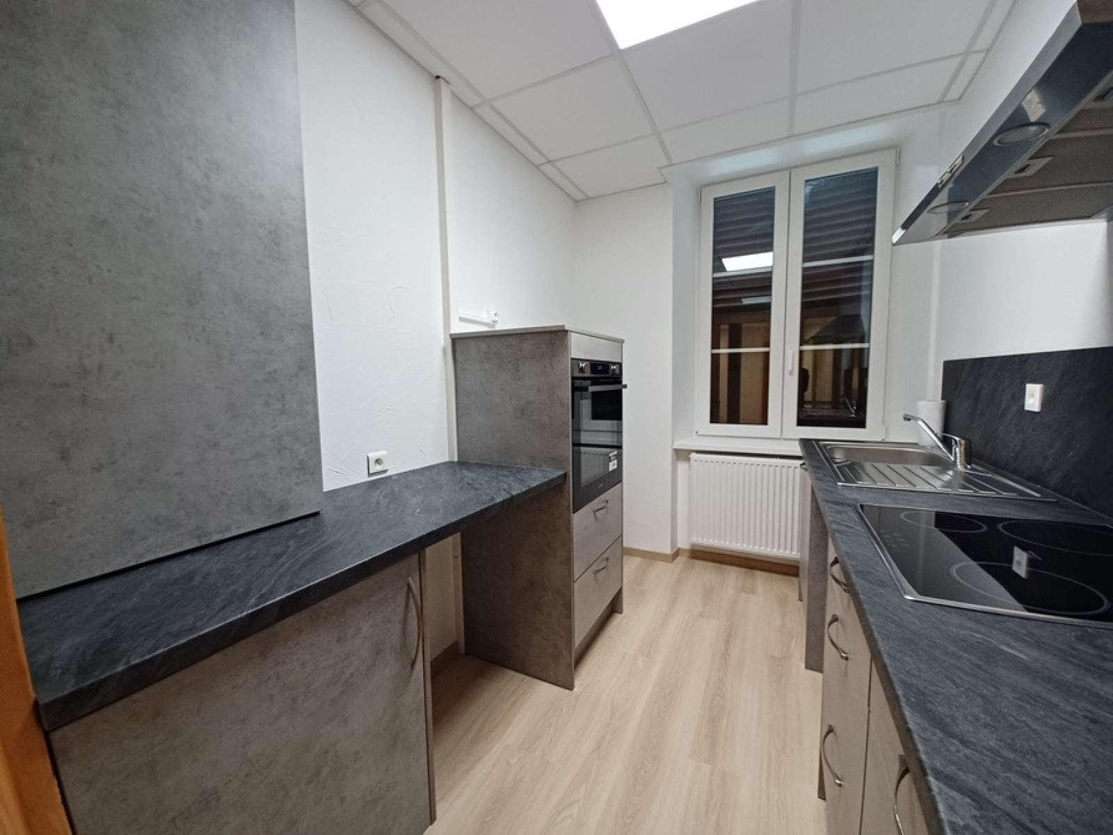proche Centre Ville, en RDC, BEL APPARTEMENT rénové et atypique comprenant : entrée-pièce palière accès buanderie-WC, dégagement accès cuisine équipée donnant sur séjour, 1 chambre + 1 chambre avec douche et lavabo, salle d'eau, WC séparé. Chauffage et eau chaude GAZ de ville. DISPONIBLE RAPIDEMENT