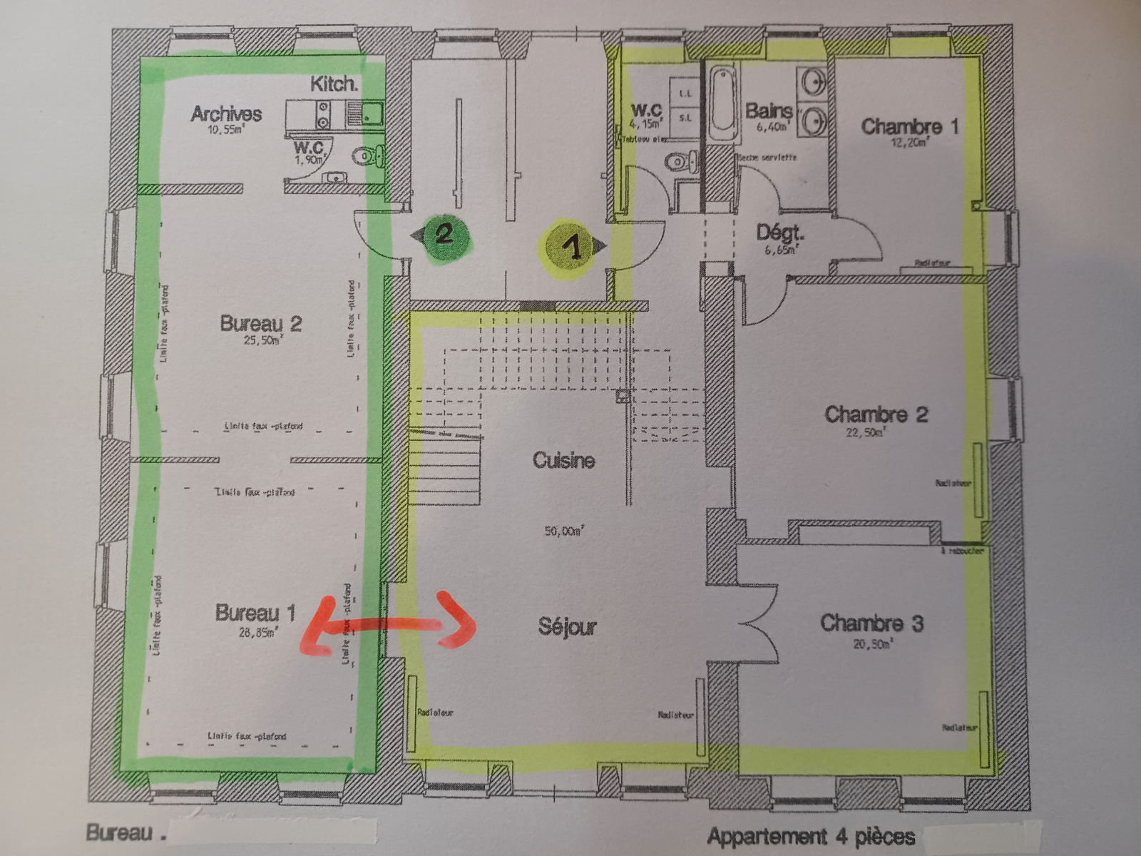 proche centre ville (5mn à pieds de la gare, accès rapide N4), en RDC d'une maison de maître, TRE BELLE SURFACE de 66m², actuellement BUREAU pouvant être transformé en APPARTEMENT, comprenant une pièce de 28m², 1 pièce de 25m², une pièce de 8m² + kitchenette + WC, 2 parkings, 1 cave sèche de 65m²