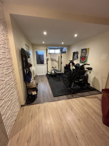 RDC : entrée, 1 chambre, salle d'eau-WC, 1 garage, salle de sport, débarras